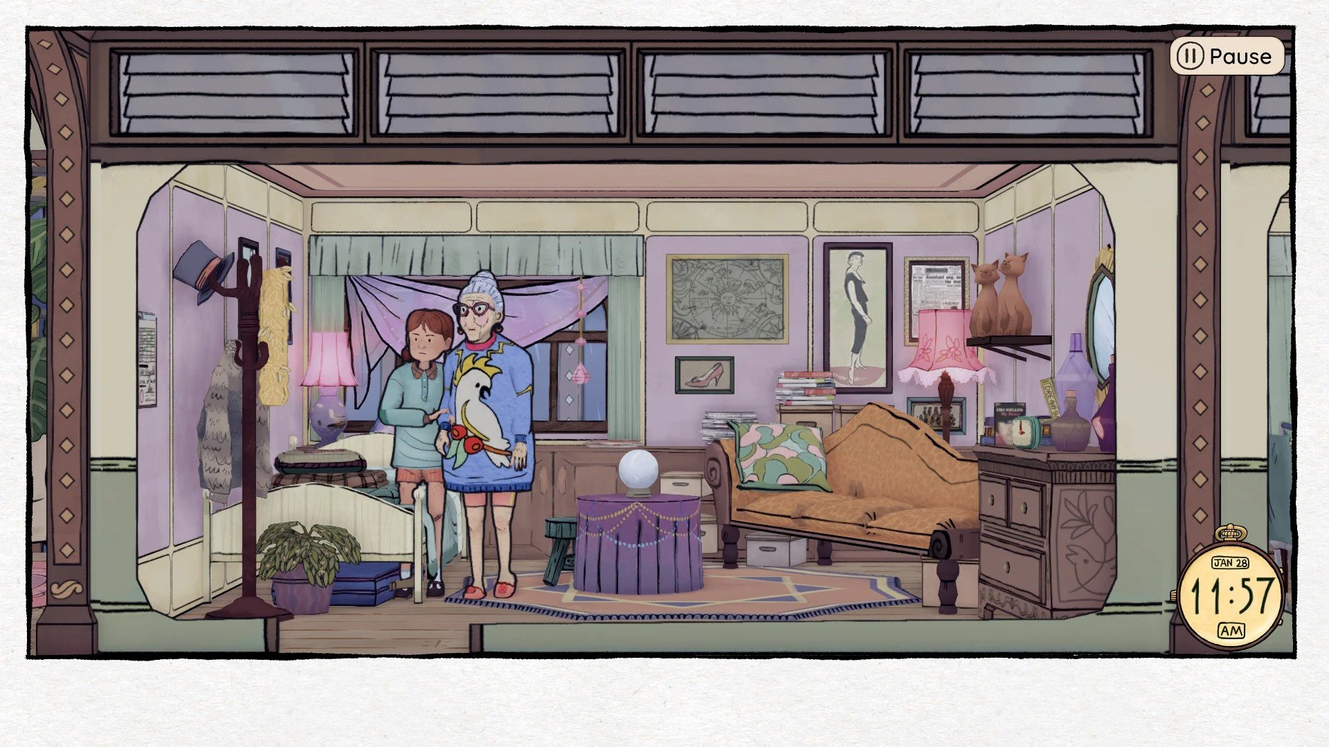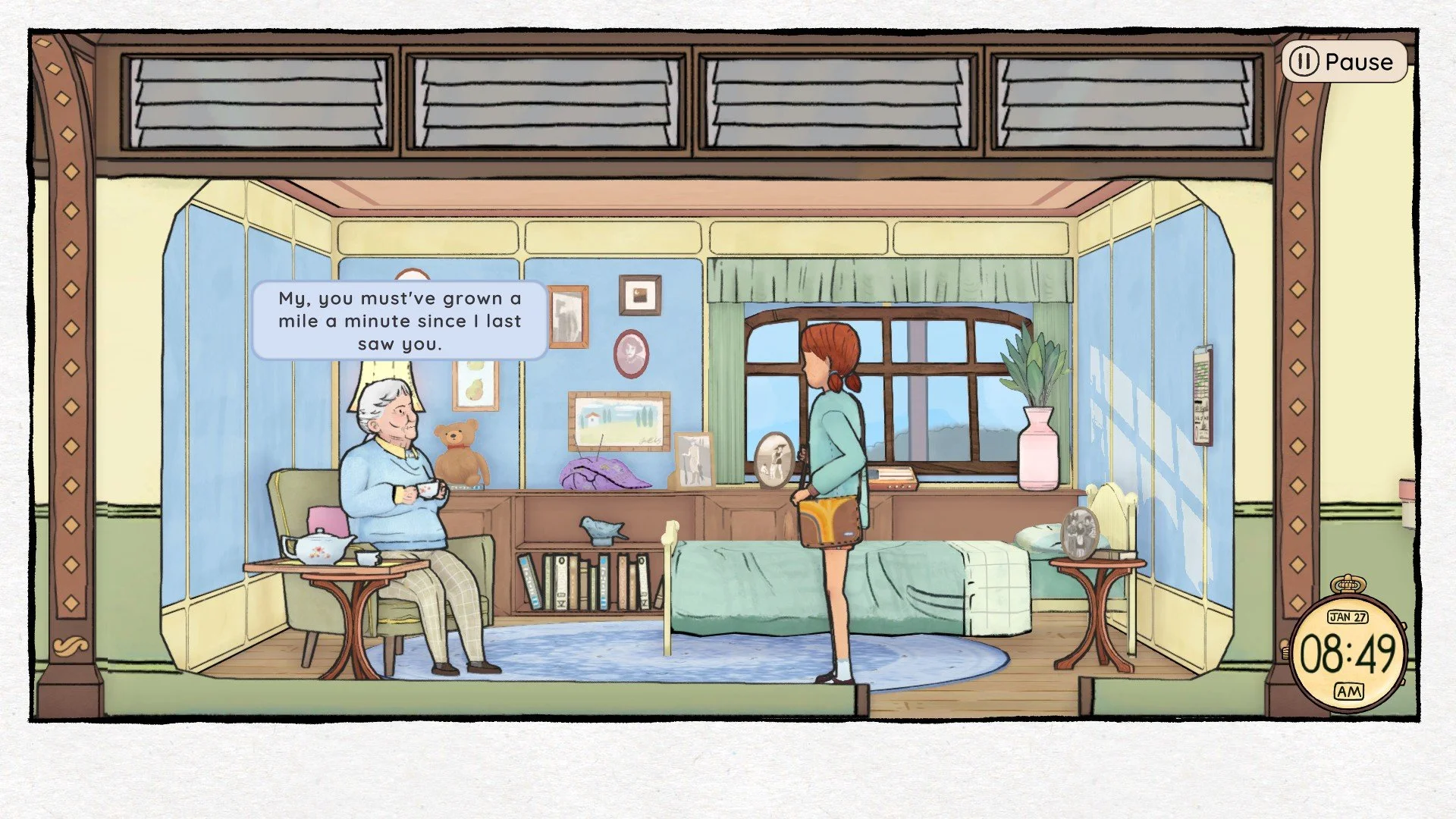 Roaming the halls of this magnificent airship involves little more mechanically than walking and talking. The goal set for your 14 year old self is simply to help your mum look after the older residents across the course of 3 in game days. Not by running fetch quests or managing meters mind you, but simply by just… spending time with them. You’re a 14 year old kid, not a superhero. Sometimes, people just need some company.