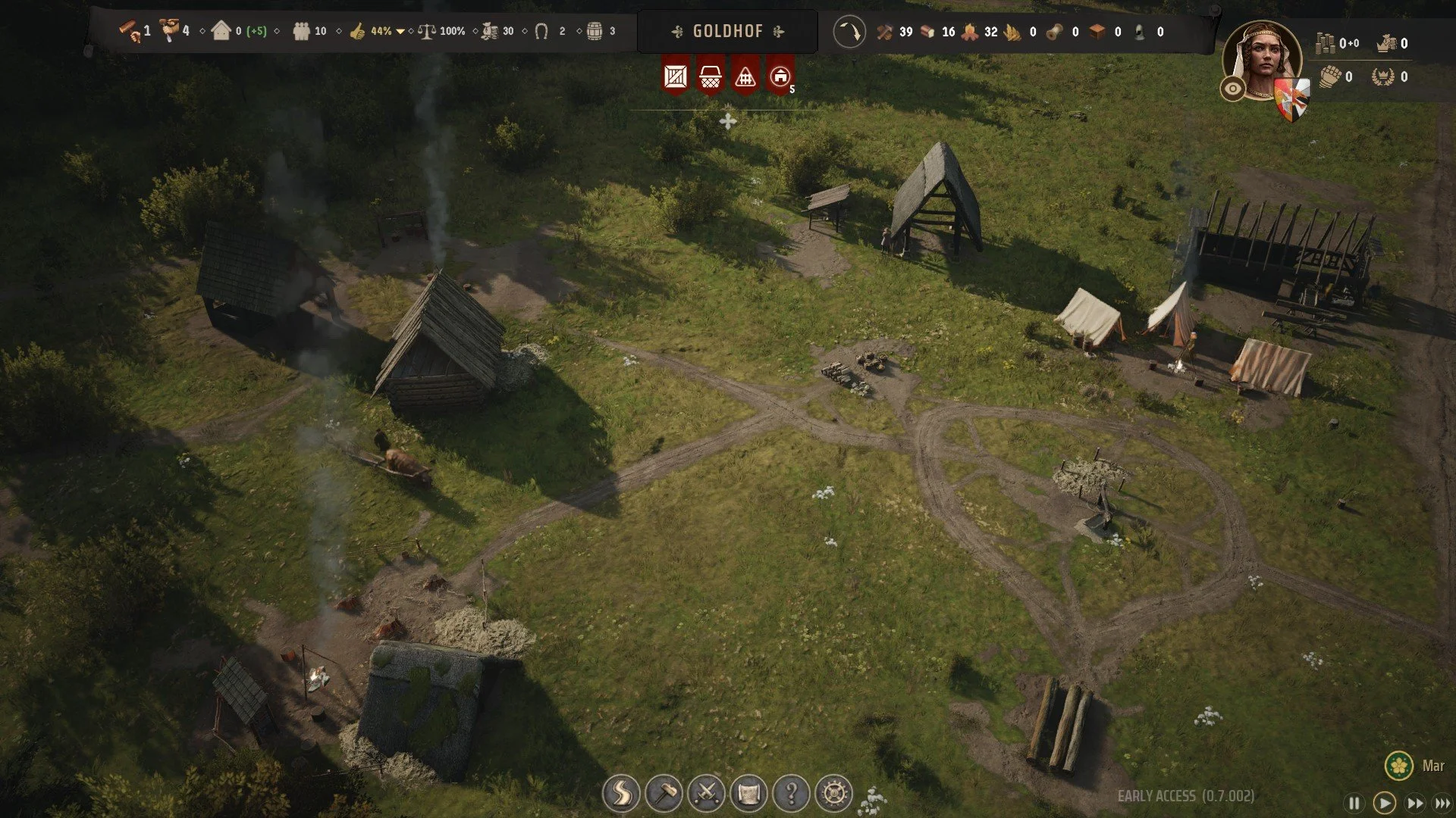 Starting out with not much more than an ox, a few materials and a handful of folks keen to start a life for themselves is already the perfect setup for a new adventure. The possibility space is as wide as it can be, with your skills of adaption to your environment and your guiding hand for nudging life in the direction of success ready to be cultivated and deployed.