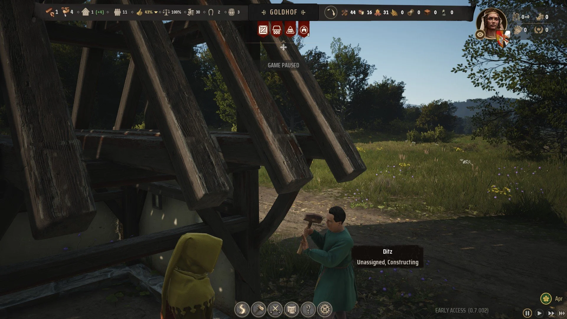 The killer feature is something that isn't uncommon in management games these days, but is utterly enthralling in Manor Lords - the street level feature. Being able to walk around your little slice of 14th century heaven gives the space a history in a way other city building / management games lack. Seeing your citizens go about their day - heading to the market, leading their oxen back to their post, chopping up the firewood for the coming winter - connects you to the ground level, giving you reason to not just plan ahead functionally, but fashionably. Even while it's flagged as a feature still essentially in beta, it is extremely cool.