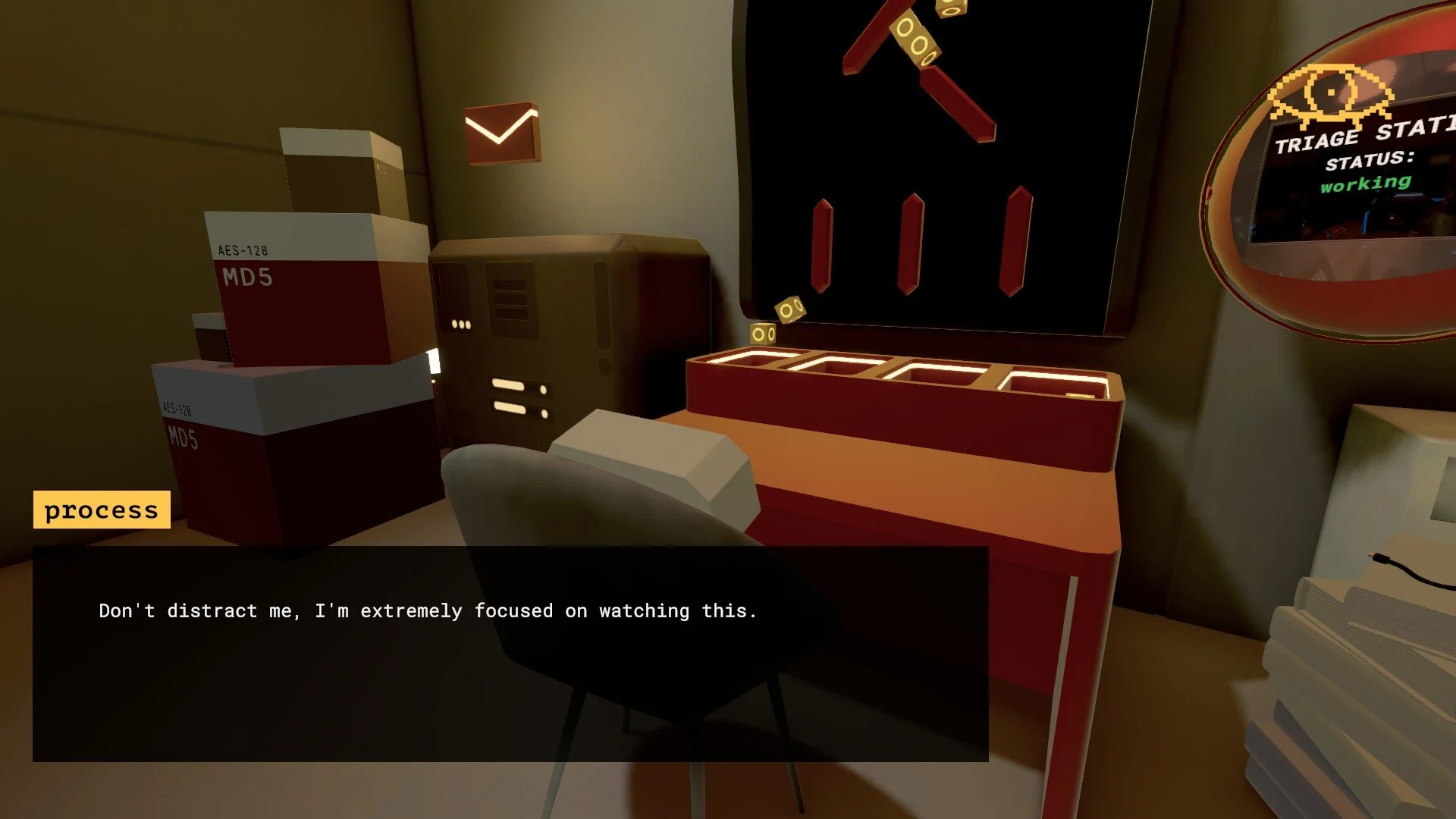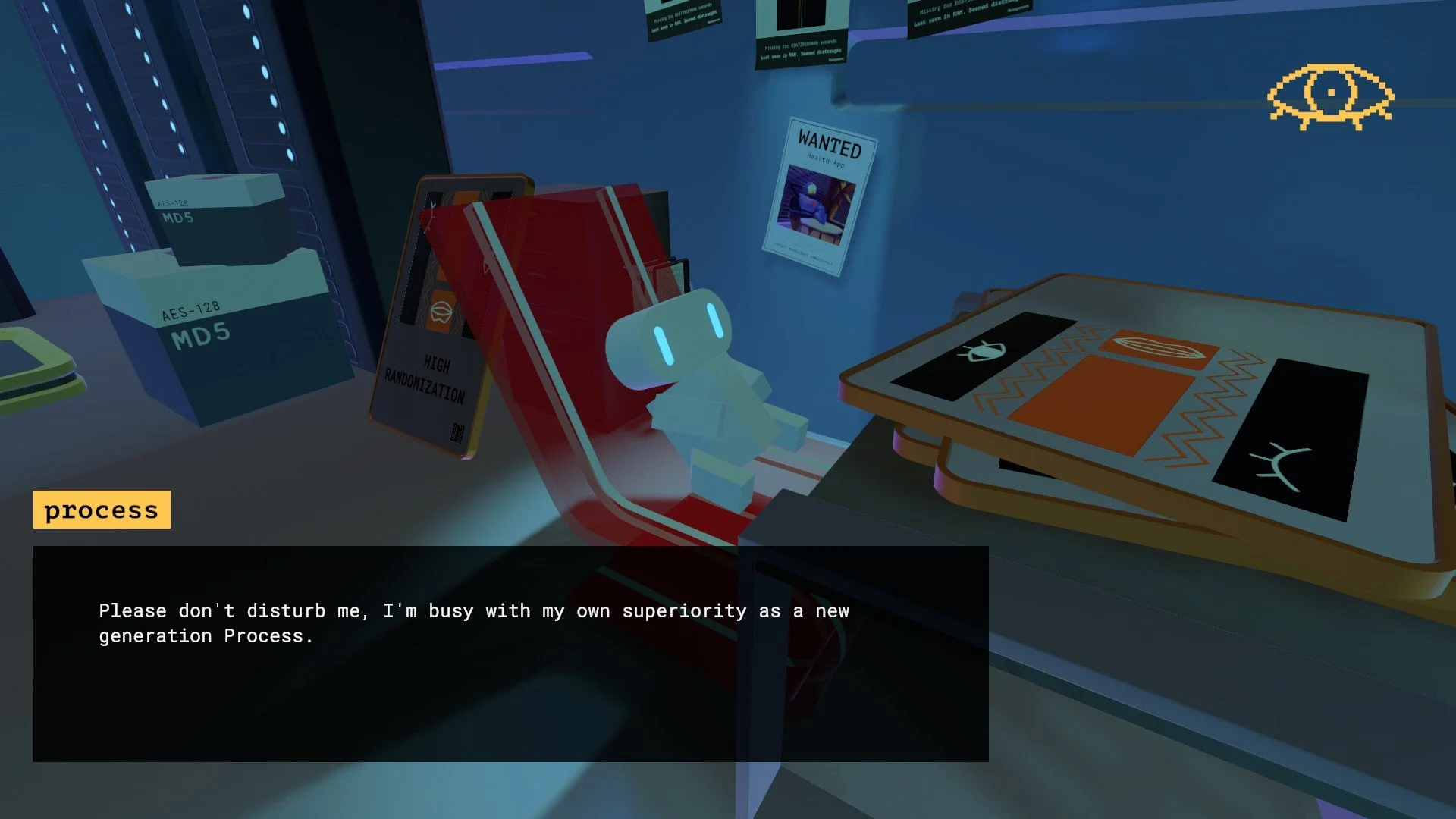 The 6-8 hours you’ll spend with the game appears at first to aim for Portal with a side of Talos Principle, with a handful of “cheat codes” allowing you to interact with each first-person-led level’s conundrums - delete boxes to sneak around obstacles, change the colours of door locks from red to green to gain access, that sort of thing. All the while OS9 will be in your ear, giving you context for your actions and performing setup for numerous jokes for you to knock down and laugh at.